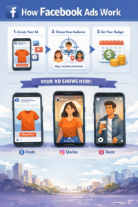 Facebook Ads is an advertising system that lets businesses show ads to people on Facebook, Instagram, Messenger, and other Meta platforms.
